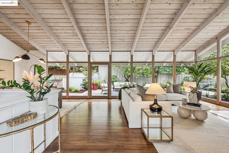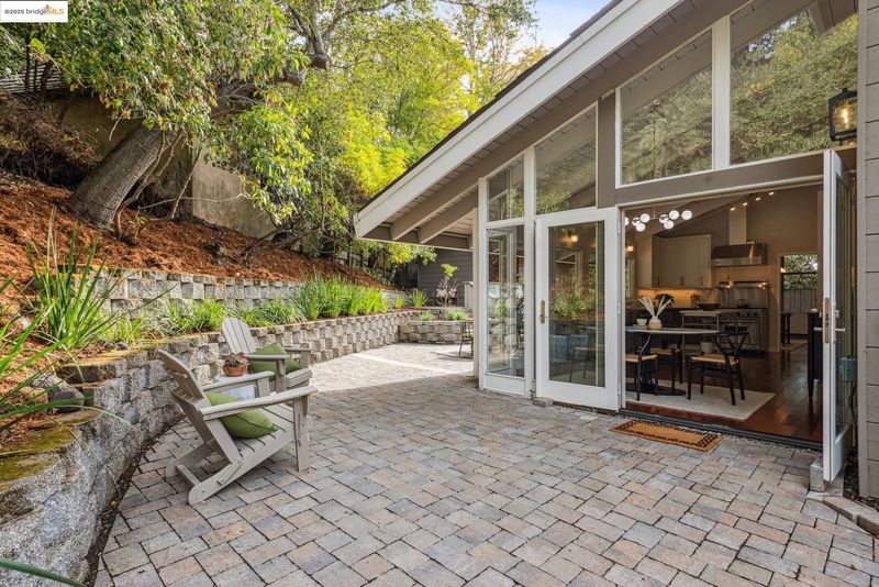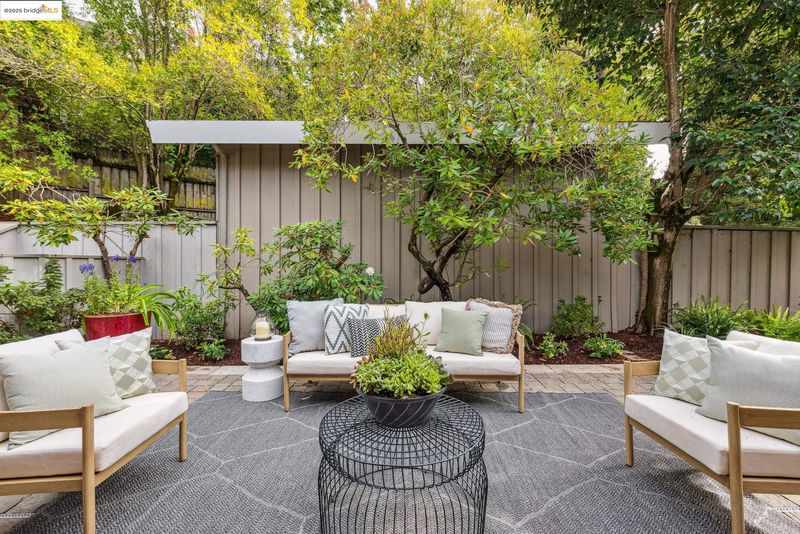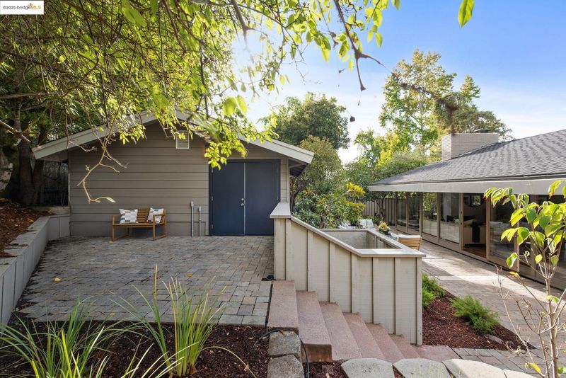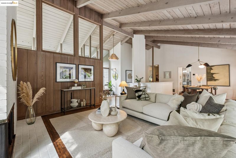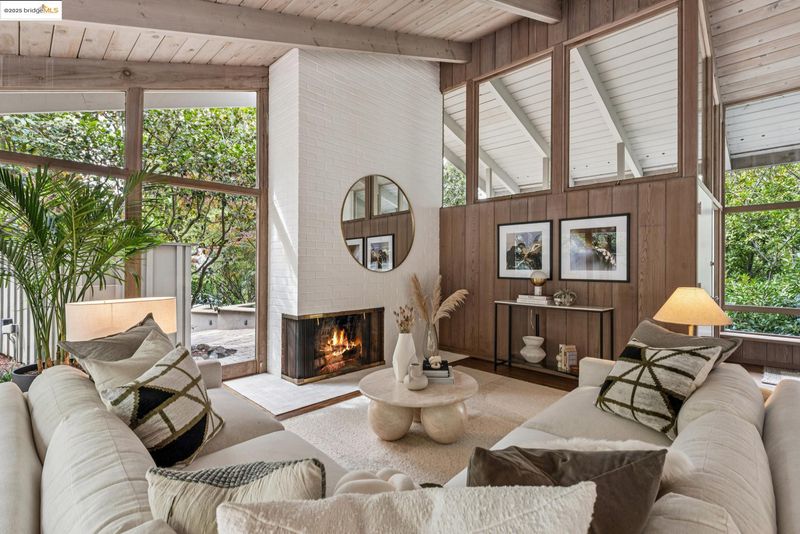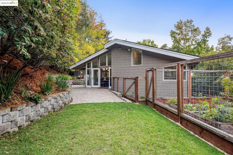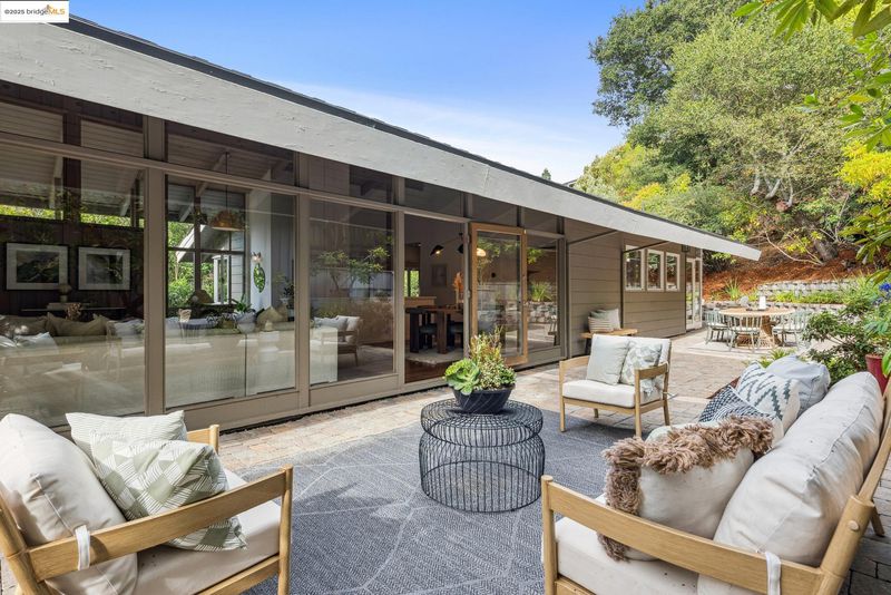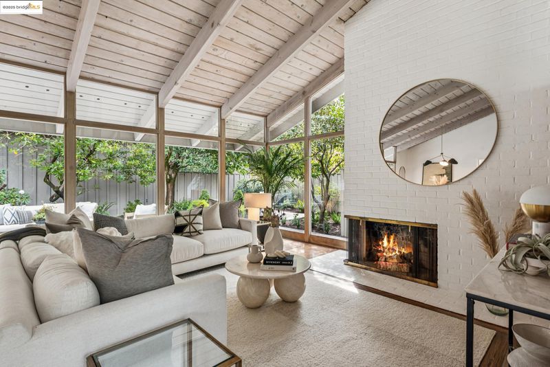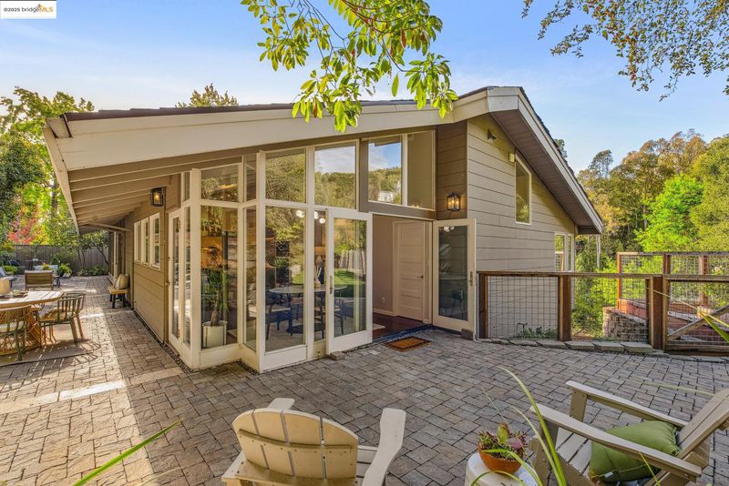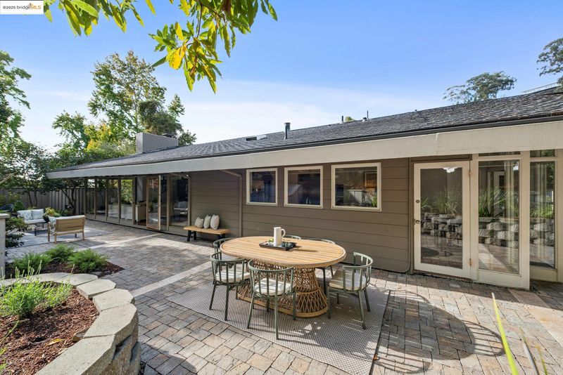 This welcoming mid-century modern home is all about comfort, light, and connection to the outdoors. Step inside to soaring ceilings, walls of glass, and a brick fireplace that instantly set the tone for relaxed California living. The open layout brings everyone together—whether you’re gathered in the living and dining areas, cooking in the spacious kitchen, or enjoying the cozy family space. French doors open from several rooms to a private patio with three inviting spots for conversation, surrounded by greenery. It’s the perfect backdrop for morning coffee, summer barbecues, or evenings under the stars. On the main level, the primary suite feels like a true retreat with its walk-in closet and spa-inspired bath with soaking tub and double sinks. An additional bedroom and full bath offer comfort for family or guests. Downstairs, a second fireplace warms the family room, which opens to the yard. Two more bedrooms, a full bath, and a large storage area make this level both practical and flexible. Outdoors, you’ll find room to play and relax: a generous lawn, a thriving vegetable garden, and plenty of space for al fresco dining and entertaining. A detached two-car garage connects conveniently to the patio for easy everyday living.