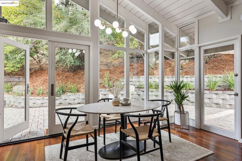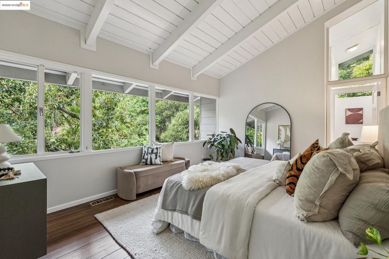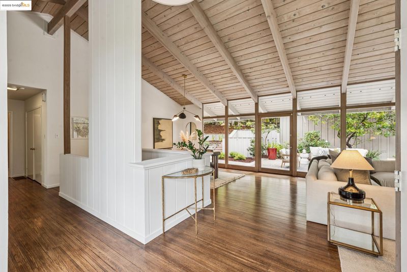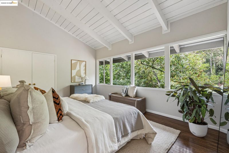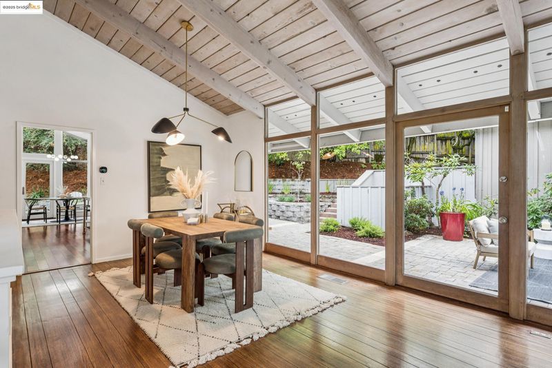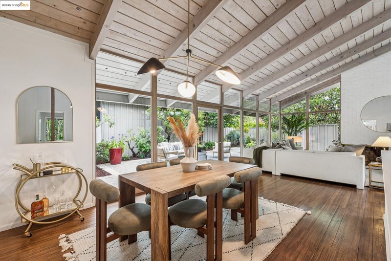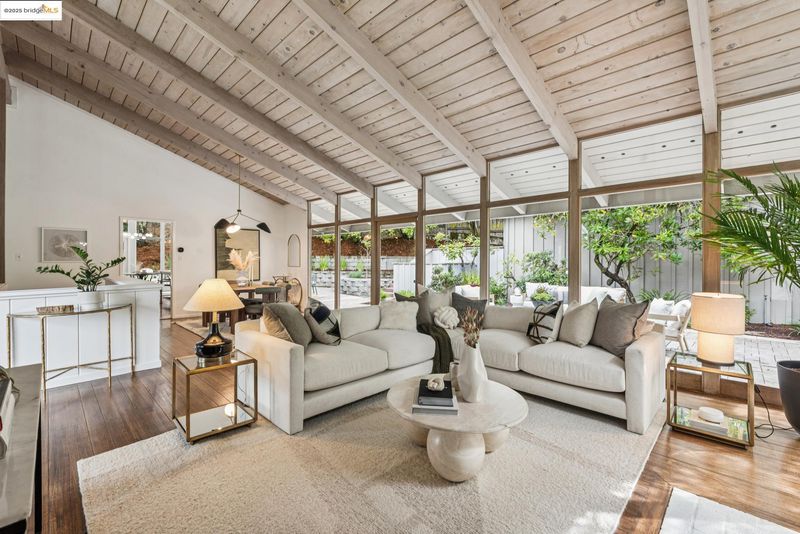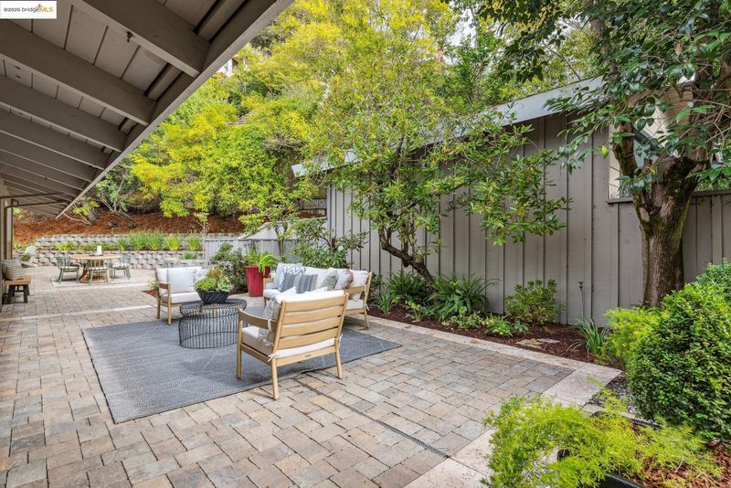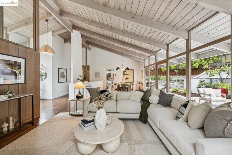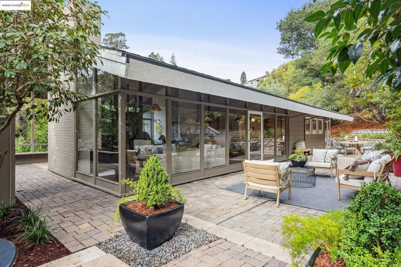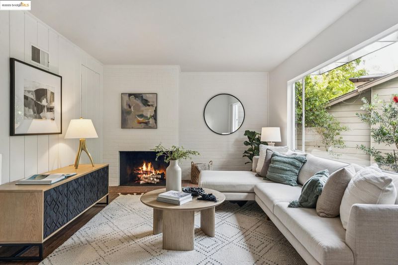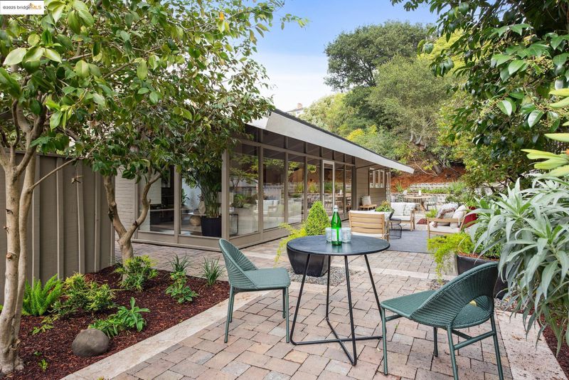 This welcoming mid-century modern home is all about comfort, light, and connection to the outdoors. Step inside to soaring ceilings, walls of glass, and a brick fireplace that instantly set the tone for relaxed California living. The open layout brings everyone together—whether you’re gathered in the living and dining areas, cooking in the spacious kitchen, or enjoying the cozy family space. French doors open from several rooms to a private patio with three inviting spots for conversation, surrounded by greenery. It’s the perfect backdrop for morning coffee, summer barbecues, or evenings under the stars. On the main level, the primary suite feels like a true retreat with its walk-in closet and spa-inspired bath with soaking tub and double sinks. An additional bedroom and full bath offer comfort for family or guests. Downstairs, a second fireplace warms the family room, which opens to the yard. Two more bedrooms, a full bath, and a large storage area make this level both practical and flexible. Outdoors, you’ll find room to play and relax: a generous lawn, a thriving vegetable garden, and plenty of space for al fresco dining and entertaining. A detached two-car garage connects conveniently to the patio for easy everyday living.