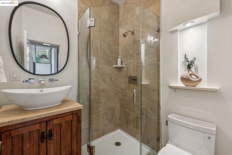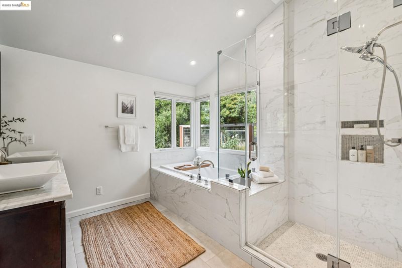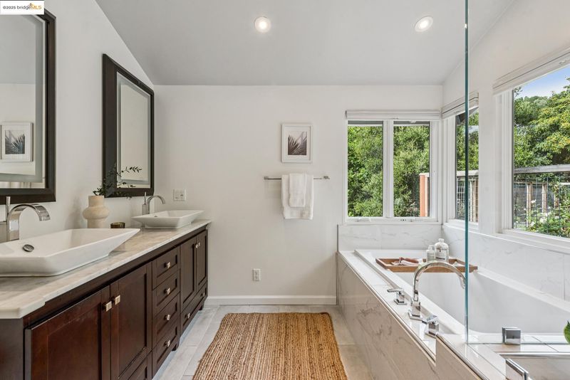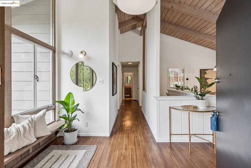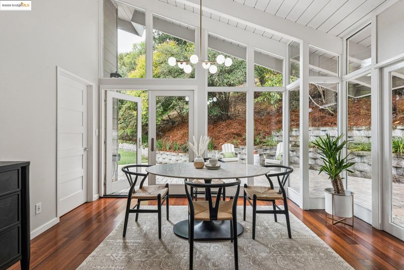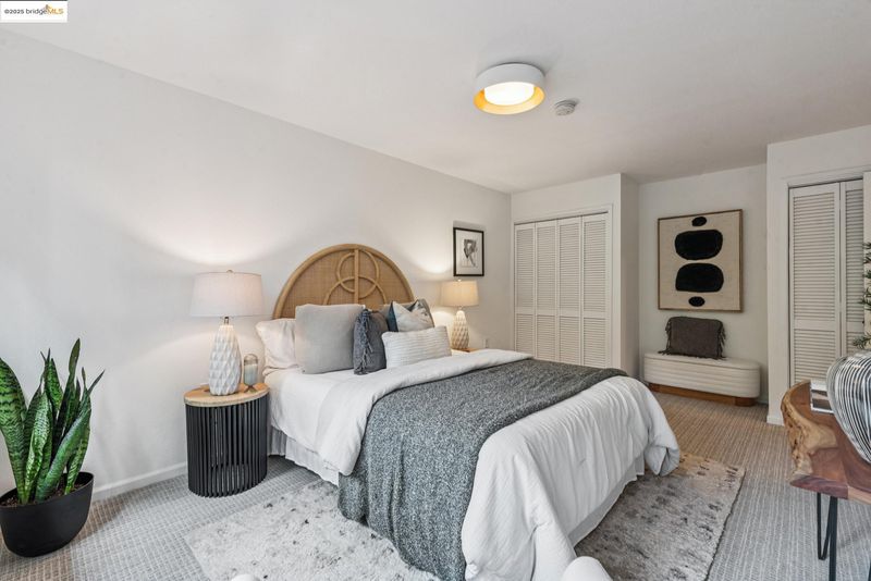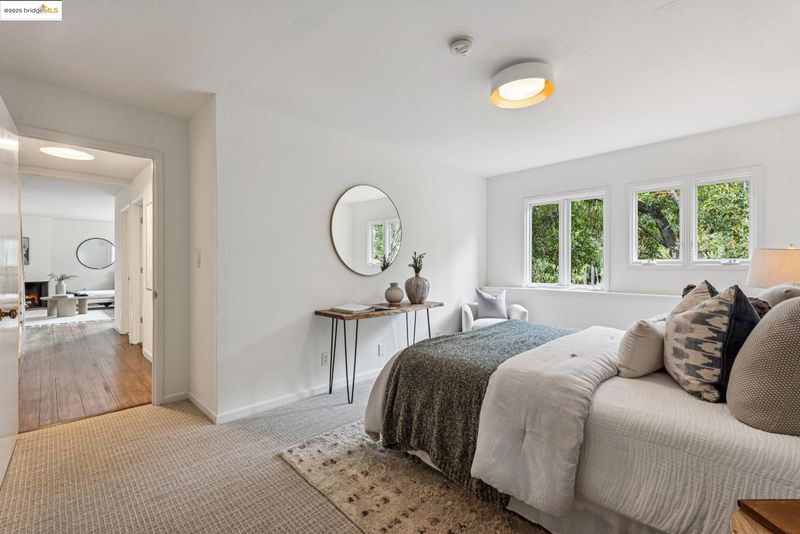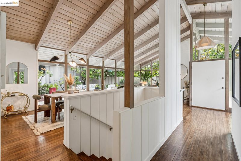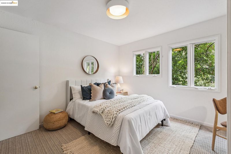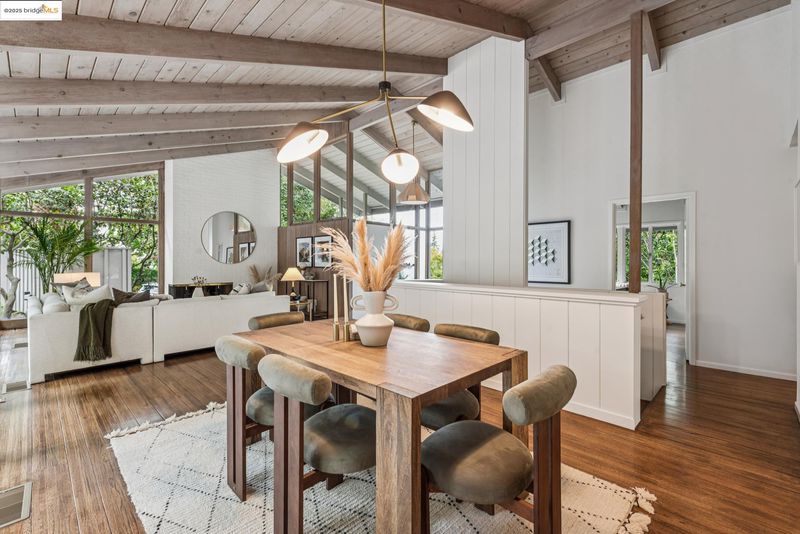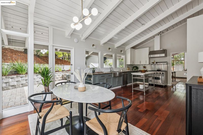 This welcoming mid-century modern home is all about comfort, light, and connection to the outdoors. Step inside to soaring ceilings, walls of glass, and a brick fireplace that instantly set the tone for relaxed California living. The open layout brings everyone together—whether you’re gathered in the living and dining areas, cooking in the spacious kitchen, or enjoying the cozy family space. French doors open from several rooms to a private patio with three inviting spots for conversation, surrounded by greenery. It’s the perfect backdrop for morning coffee, summer barbecues, or evenings under the stars. On the main level, the primary suite feels like a true retreat with its walk-in closet and spa-inspired bath with soaking tub and double sinks. An additional bedroom and full bath offer comfort for family or guests. Downstairs, a second fireplace warms the family room, which opens to the yard. Two more bedrooms, a full bath, and a large storage area make this level both practical and flexible. Outdoors, you’ll find room to play and relax: a generous lawn, a thriving vegetable garden, and plenty of space for al fresco dining and entertaining. A detached two-car garage connects conveniently to the patio for easy everyday living.