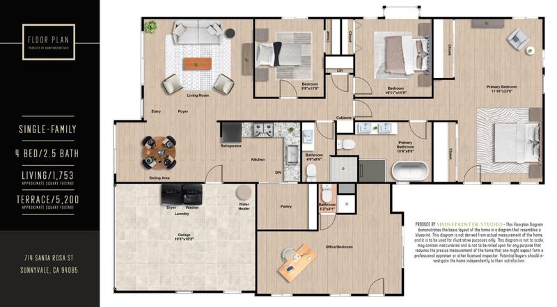 Nestled in the heart of Sunnyvale, this beautifully updated 4-bedroom, 2-bath modern home seamlessly blends designer finishes with Silicon Valley convenience. Offering 1,753 sq ft of thoughtfully designed open-concept living space, the home showcases recessed lighting, and an inviting chefs kitchen featuring a quartz island, custom cabinetry, and a walk-in pantry . The luxurious primary suite includes a spa-inspired bathroom with a freestanding soaking tub, separate shower, and dual vanity. Major system upgrades provide peace of mind, including a 200-AMP electrical panel, new HVAC system, new roof, new water heater, and dual-pane windows. Step outside to a private, low-maintenance yard filled with over 10 varieties of mature fruit trees, grape, fig, orange, plum, pomegranate, avocado, peach, lemon, loquat, and more, creating your own backyard orchard. Ideally situated in a quiet setting just moments from local shopping and dining, this home is a commuters dream with easy access to Highways 101, 237, and Lawrence Expressway. Enjoy proximity to major tech campuses such as Google, Apple, and Amazon, as well as vibrant downtown Sunnyvale and Murphy Avenue. Move-in ready and perfectly located, this home offers the very best of Sunnyvale living.