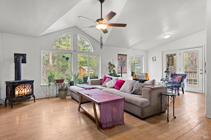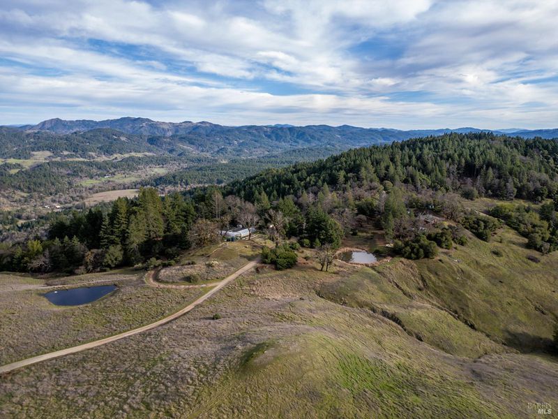 Soak in breathtaking views from this 80-acre ridge-top retreat. Set on 80 acres, this property offers privacy, comfort, and convenience only 25 minutes from town. This 3BD/2BA, ~2,000 sq. ft. triple-wide modular home on a permanent foundation is filled with natural light and sweeping views from every room. Sustainable features include solar power with backup generator, a reliable spring, two ponds, garden areas, greenhouses, and a versatile barn/storage building for animals, equipment, or creative projects. The home is warmed by a wood stove, and the spacious primary suite includes a soaking tub. With plenty of usable land and potential for a second home or guest house, the possibilities are endless. Located near the Black Oak Ranch, home to Camp Winnarainbow and festivals that attract guests from near and far with world-class music and culture, this property blends privacy, self-sufficiency, and convenience into a truly special place. Just about an hour's drive will take you to the majestic redwoods or the Pacific Ocean.