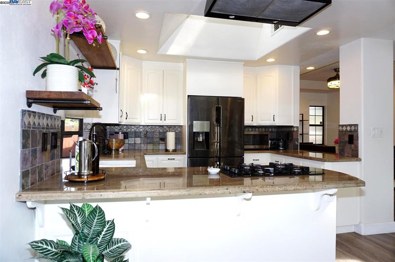 - Dishwasher, Oven, Refrigerator, Dryer, Washer, Gas Water Heater, 220 Volt Outlet, Counter - Solid Surface, Disposal, Oven Built-in, Skylight(s), Updated Kitchen